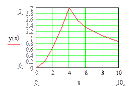 Особое внимание уделите случаю, когда аргумент задан набором значений (без шага). Например, задано х=0,2; 1,5; 4; 7,6 и 10. В этом случае значения аргумента следует вводить величинами с нижними индексами (индексы вводятся после нажатия клавиши открывающей квадратной скобки [):