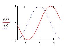 y(x):=sin(x) z(x):=cos(x) x:=-3,-2.5..3