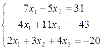 Варианты систем линейных алгебраических уравнений заданы в таблице 4. Требуется найти решение системы уравнений (корни х1, х2 и х3) тремя методами: