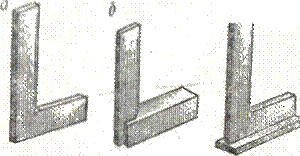 Угольники являются наиболее распространенным инструментом для проверки прямых углов. Стальные угольники с углом в 90˚ бывают различных размеров, цельные или составные. При разметке применяется плоские слесарные угольники с широким основанием и угольники Т-образной полкой.