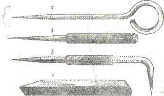 Чертилки предназначены для нанесения разметочных линий. Для изготовления чертилок применяют круглую инструментальную сталь марок У10 или У12 диаметром 3-5 мм. Длина чертилки обычно не превышает 200-250 мм. Чертилки изготовляют с одним и двумя рабочими концами, которые на длине 20-25 мм, как правило, подвергают закалке.