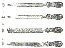 Напильником называют режущий инструмент виде стального закаленного бруска определенного профиля с большим количеством насечек или нарезок, образующие мелкие и острые зубья. Этими зубьями напильник срезает небольшой слой металла в виде стружке. Материалом для изготовления напильников служит углеродистая инструментальная сталь марок У13 и У13А, а также хромированная шарикоподшипниковая сталь ШХ15. Напильники имеют различные формы наконечного сечения: плоские, квадратные, трехграные, круглые и т.п. В зависимости от характера выполненной работы применяют напильники различной длины, а также с различным числом насечек.