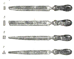 Напильники- это стальные стержни определенного сечения, на гранях которых выполнена насечка, образующая режущие зубья. В зависимости от числа насечек на10 мм длины напильники изготовляются с насечкой 6 номеров от 0 до 5(ромбические и ножовочные напильники с насечкой от 2 до 5).
