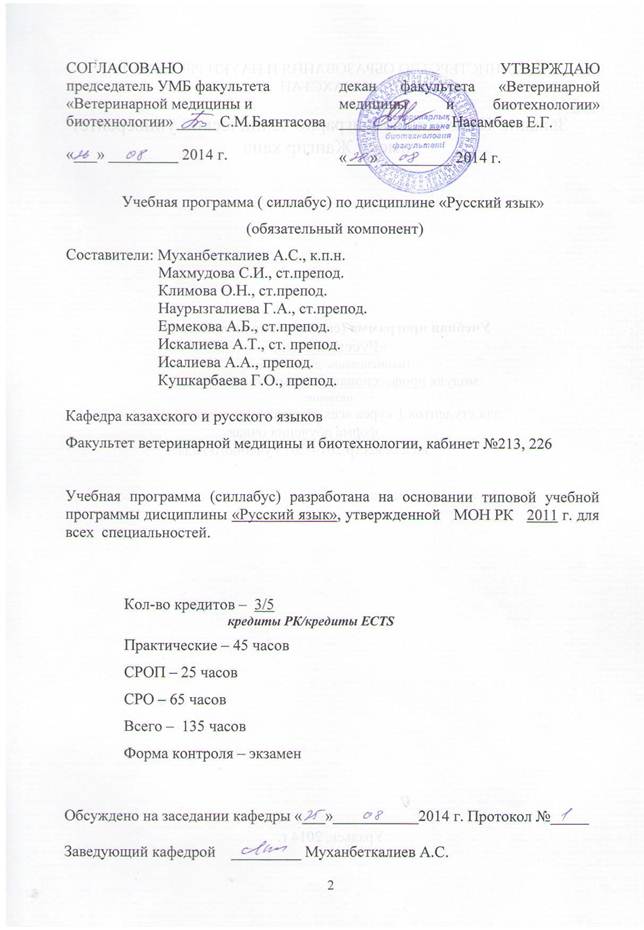Учебная программа (силлабус) по дисциплине «Русский язык» состоит из 4-х модулей: