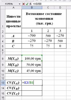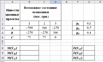 . В зависимости от состояния экономики возможны такие значения чистой теперешней стоимости (NPV) этих проектов (в тыс. грн.):