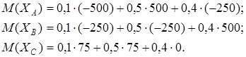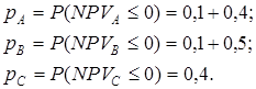 - соответственно случайные величины чистой теперешней стоимости (NPV) проектов А, В, С.