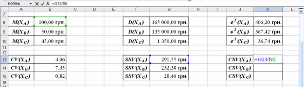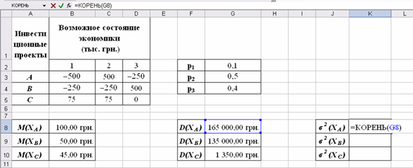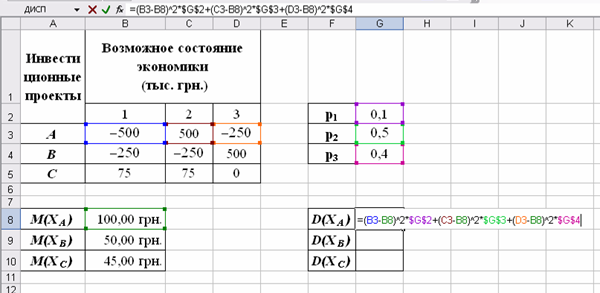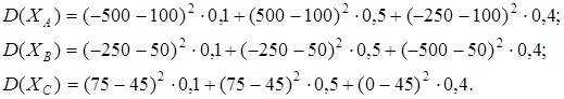 Вычислим в качестве показателя количественной оценки риска дисперсию (вариацию):