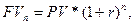 Процесс, в котором при заданных значениях PV и r необходимо найти, величину будущей стоимости инвестиционных средств к концу определенного периода времени (n), называют операцией наращивания.