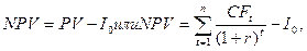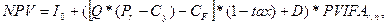 Для того чтобы оценить инвестиционную привлекательность проекта с постоянным из года в год уровнем цен, объемом продаж, производственными издержками и точно определенным сроком его эксплуатации, можно в формуле NPV разложить CF на факторы меньшего порядка с учетом стандартного значения текущей стоимости аннуитета. Исчисление NPV в этом случае можно осуществить по формуле