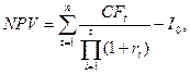 Если величина r непостоянная (изменяется от периода к периоду), то NPV рекомендуется определять по формуле