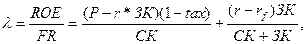 Соответственно «рентабельность – финансовый риск» (λ), используется в качестве критерия оптимизации структуры капитала, может быть представлена формулой