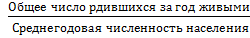 Для определения интенсивности процесса рождений обычно используют общий коэффициент рождаемости, представляющий собой интенсивный показатель, в котором в качестве среды выступает среднегодовая численность населения, а в качестве явления - общее число родившихся за год живыми.