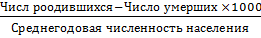 Показатели естественного прироста населения получают как разность показателей рождаемости и смертности или из абсолютных чисел - как отношение разности, полученной из абсолютных чисел родившихся и умерших, к среднегодовой численности населения.