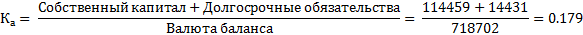 Значение коэффициента финансовой устойчивости равное 0.179 свидетельствует о том, что предприятие не располагает достаточной величиной собственного капитала для обеспечения своей финансово-хозяйственной деятельности.