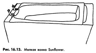 Для детей более старшего возраста, которые не могут сидеть, лучше всего подойдет мелкая ванна Sunflower. Она сделана из нескользкой термостойкой пластмассы. Длину ванны можно уменьшить, если вставить наклонную спинку, которая продается отдельно. Эта ванна имеет те же преимущества, что и ванночка Eezi, о которой говорилось выше, – она ставится в обычную ванну, поэтому ребенок оказывается на такой высоте, что маме удобно его мыть (рис. 16.13).