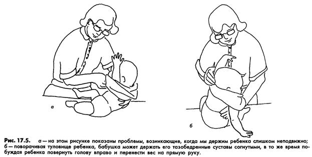 Не стоит брать ребенка за руку и тянуть – это только увеличит тонус в сгибателях. Нужно сначала выпрямить руку, поворачивая ее наружу в плечевом суставе и следя за тем, чтобы локоть был разогнут, и только после этого просовывать ее в рукав. То же самое следует делать, когда вы снимаете одежду.