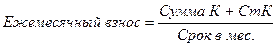 Для исчисления ежемесячных взносов достаточно сложить сумму предоставленного кредита с его стоимостью и разделить полученное на длительность кредита.