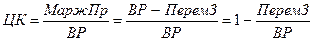 Коэффициент, соизмеряющий величины маржинальной прибыли и выручки от реализации, носит название ценового коэффициента (ЦК).