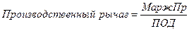 Для того, чтобы оценить взаимосвязь маржинальной прибыли и прибыли от основной деятельности рассчитывается так называемый производственный рычаг.