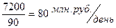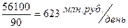 Рассматриваемый период анализа составляет 90 дней (квартал). Средняя величина выручки от реализации, получаемая за день (знаменатель формулы (9.36)) рассчитывается:
