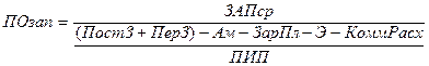 В частности, период оборота запасов (ПОзап)рассчитывается по формуле:
