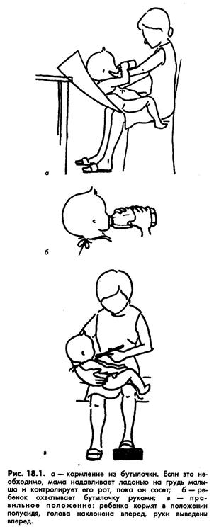 Мы продолжаем подчеркивать, что хороший контроль за «всем телом» ребенка необходим во время кормления. Если его тело не находится в стабильном положении, то спастичность усугубится, а непроизвольные движения станут активнее даже раньше, чем бутылка или ложка окажутся у него во рту, и ему будет гораздо труднее сосать и двигать губами. Никогда не придерживайте голову малыша сзади за затылок – это немедленно вызовет выгибание туловища и запрокидывание головы.