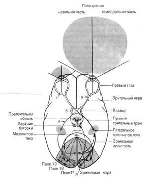 Рис. 1.2. Схема зрительных путей в головном мозгу человека.