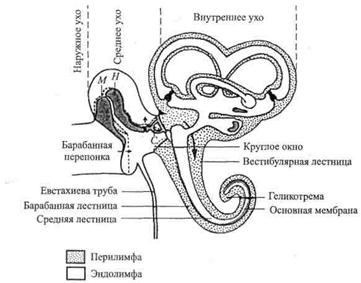 Рис. 2.1. Схема среднего и внутреннего уха (по Р. Шмидту и Г. Тевсу, 1985).