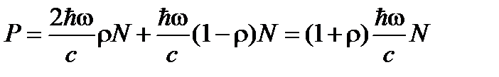 Поскольку фотоны обладают импульсом, то свет, падающий на тело, должен оказывать на него давление. Рассчитаем с точки зрения квантовой теории световое давление, оказываемое на поверхность тела потоком монохроматического излучения (частота w), падающего перпендикулярно поверхности. Если в единицу времени на единицу площади падает N фотонов, то при коэффициенте отражения r света от поверхности r N фотонов отразится, а (1-r) N – поглотится. Каждый поглощенный фотон передает поверхности импульс