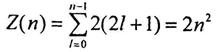Максимальное число электронов Z(n), находящихся в состояниях, определяемых данным главным квантовым числом n: