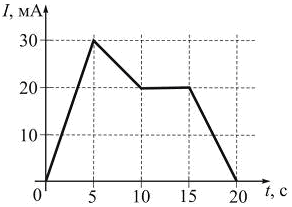 На рисунке показана зависимость силы тока от времени в электрической цепи с индуктивностью 1 мГн.