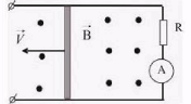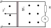 По параллельным металлическим проводникам, расположенным в однородном магнитном поле, с постоянной скоростью перемещается перемычка, как показано на рисунке.