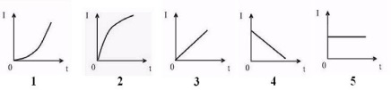 По параллельным металлическим проводникам, расположенным в однородном магнитном поле, со скоростью V=at (a=const, a˃0) перемещаетсяперемычка, как показано на рисунке. Зависимость индукционного тока от времени соответствует графику …