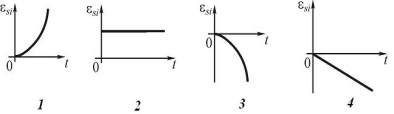 где а и с – положительные постоянные величины. Зависимость от времени ЭДС самоиндукции, возникающей в контуре, правильно показана на графике …