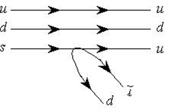 На рисунке показана кварковая диаграмма распада