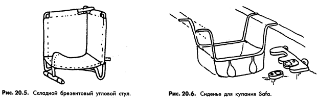 Этот переносной стул разработан Центром параличей Чейне (Cheine Walk Spastic Centre) для детей со спастическими формами церебрального паралича от 2 до 8 лет. Конструкция стула стимулирует ребенка поворачивать ноги наружу в тазобедренных суставах, а приподнятое сиденье позволяет стопам полностью опираться на пол. Когда ребенок садится в стул, то сиденье отклоняется назад, что позволяет не фиксировать туловище ремнями. Заваливаться стулу не дают две опоры, прикрепленные к задней стороне под углом (рис. 20.5).