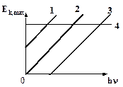 А23 На рисунке приведены варианты графика зависимости максимальной энергии фотоэлектронов от энергии падающих на фотокатод фотонов. В каком случае график соответствует законам фотоэффекта?