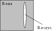 А29 Линзу, изготовленную из двух тонких сферических стекол одинакового радиуса, между которыми находится воздух (воздушная линза), опустили в воду (см. рис.). Как действует эта линза?