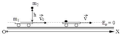 или в проекции на координатную ось ОХ: m1v0 = (m1 + m2)v Þ v =