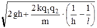 | 2) | Записан закон сохранения энергии с учетом формул расчета потенциальной и кинетической энергий: mqh + k = + k .