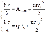 hn = Aвых + EК или = Aвых + , где v1 – скорость движения электронов после вырывания с поверхности металла.