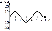 На рисунке представлена зависимость координаты центра шара, подвешенного на пружине, от времени. Период колебаний равен