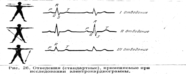 Электрокардиограмма (ЭКГ) — кривая, отражающая протекание процесса возбуждения в сердце. ЭКГ содержит зубцы PQRST. Зубец P отражает период возбуждения предсердий. Сегмент P-Q представляет собой период прохождения импульса через предсердно-желудочковый узел. Комплекс зубцов QRST отражает процесс возбуждения в желудочках. Зубец Q соответствует возбуждению сосочковых мышц. Зубец R отражает распространение возбуждения по основаниям желудочков. Зубец S соответствует полному охвату возбуждения желудочков. Зубец T и сегмент S-T отражают метаболические процессы в миокарде.