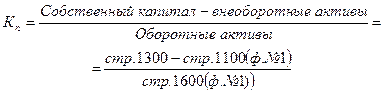 | 5. Коэффициент покрытия оборотных активов собственными оборотными средствами Кп | | 0,4 и более | 0,3¸0,1 | Менее 0,1 или отрицательное значение |