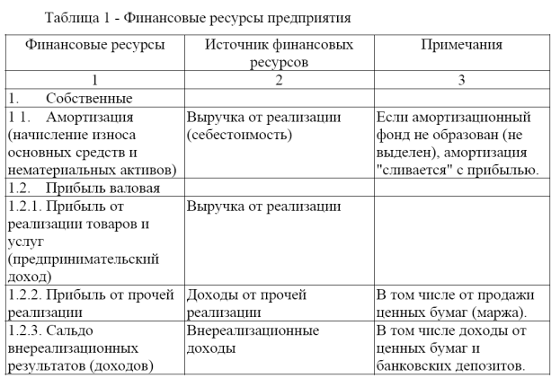 Формирование финансовых ресурсов предприятий осуществляется за счет собственных и заемных средств, мобилизации ресурсов на финансовом рынке и поступления денежных средств от финансово- банковской системы в порядке перераспределения.
