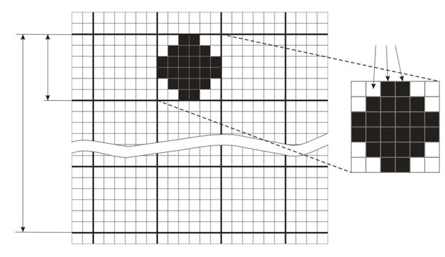 Рис. 17. Линиатура полиграфического растра определяется количеством элементов этого растра, приходящихся на единицу длины