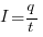 Сила тока (I) — физическая величина, равная электрическому заряду (q), перенесенному через поперечное сечение проводника в единицу времени (t).