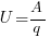 Напряжение (U) определяется работой (А), выполняемой электрическим током при перенесении заряда (q) в один кулон на данном участке цепи.