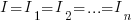 1) сила тока (I) во всех участках (I1, I2, … In) цепи одинакова;