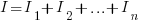 1) сила тока (I) в цепи равна сумме сил токов (I1, I2, … In) в отдельных ветвях;